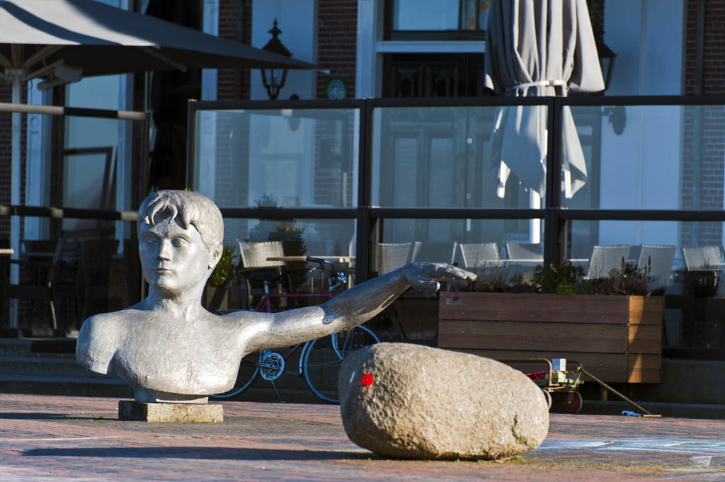 Langs de Waal staan een aantal mooie kunstwerken. Zoals de beelden van de Waterjongen. Het standbeeld staat aan de waterrand. Met zijn hand geeft de jongen aan hoe hoog het water mag komen, voor je in Zaltbommel natte voeten krijgt. Aan de overkant, op de kade, zie je het borstbeeld van de jongen.