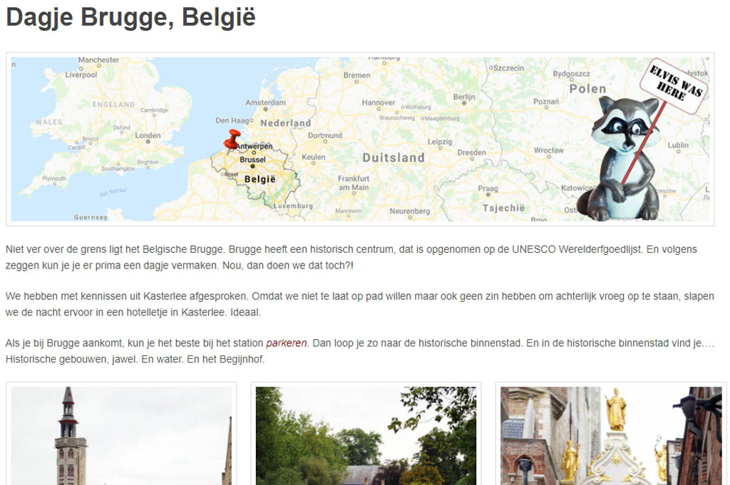 Wat hebben wij er tot nu toe gedaan? We zijn twee keer naar Brugge geweest, hebben een stedentrip Brussel gedaan, hebben een weekend in de Ardennen doorgebracht, gingen een middag naar het leuke plaatsje Durbuy en bekeken stad Gent. Dat is vast nog niet het laatste, maar voor nu moet u het met die reisverslagen en foto’s doen.