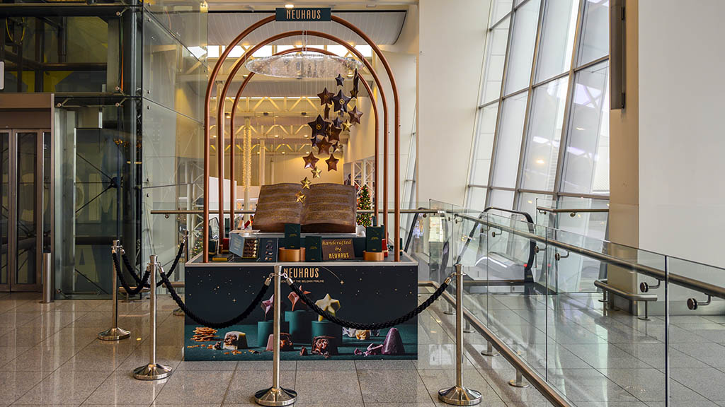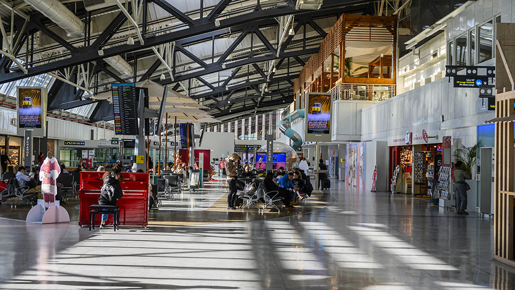 De stadsbus komt al vlot en net na elven staan we op het vliegveld. Dat is natuurlijk helemaal in kerstsferen, met kerstlichtjes en kerstbomen. We zijn al online ingecheckt en we kunnen zelf onze koffer van een label voorzien en afgeven. Easy peasy. We gaan meteen maar door de controle, zodat we ergens een rustig plekje kunnen zoeken om de meegebrachte broodjes op te eten. Het is inmiddels twaalf uur, tijd voor lunch.