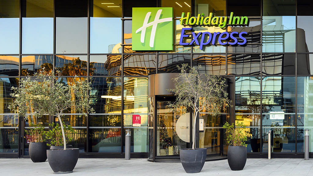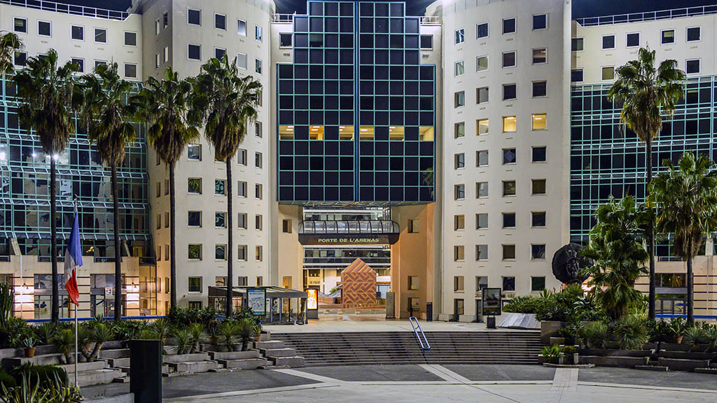We slaan ons door de ellende heen en landen om kwart over drie in Nice. Even wachten op de bagage en dan kunnen we naar buiten. Daar komt al snel een tram aan. Die brengt ons een halte verder, naar Grand Arenas. Tot aan deze halte kun je gratis met de tram. Erg handig, want ons hotel zit ook bij deze halte. Nou ja, daar heb ik hem ook op uitgezocht. We worden hartelijk verwelkomd en krijgen een rustige kamer op de 6e verdieping, achteraan. Prima kamer, zoals we dat van Holiday Inn Express zijn gewend.