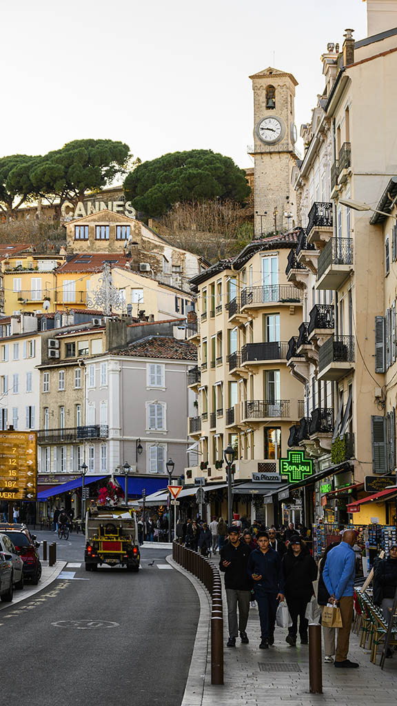 Tot ik de prijs hoor. Ja daag, acht euro voor een lullig worstje is uitbuiting. Of hij het dan in de prullenbak zal gooien, vraagt de meneer. Moet hij zelf weten. We wandelen door en kopen verderop een veel lekkerder en grotere panini met verschillende kazen. We wandelen naar de andere kant van de haven. Daar is de oude stad en erboven prijkt een kasteel, op een berg. Nou, dat was wel zo’n beetje alles dat Cannes te bieden heeft.