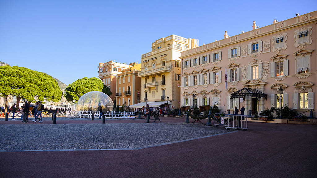 Daardoor is het lastig een plekje met goed zicht te vinden. We kunnen er wel een glimp van zien. Het wisselen gaat met veel ceremonie gepaard. Als alle wachten weer op hun plek staan, kunnen we het uitzicht vanaf hier bewonderen. Monaco is natuurlijk meer hoog dan groot, het uitzicht is vooral op hoogbouw tegen de rotsen omhoog en op de haven met hele dure boten.