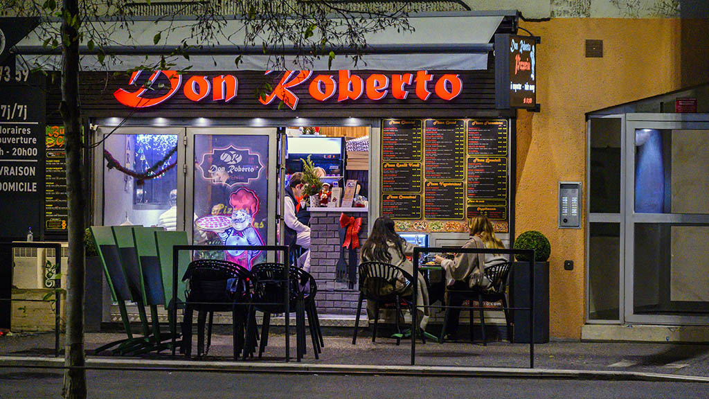 Voor het avondeten zijn de opties in de buurt wel een beetje op. Op het vliegveld zelf zit ook niet veel bijzonders. We hebben nog tramtegoed, we kunnen gerust een stukje verder zoeken. Ik vind een pizzeria met een goede waardering, vlakbij een tramhalte. Je kunt er nog binnen zitten ook. Op weg naar Don Roberto, bij halte Saint-Hélène. De pizza’s smaken prima, we betalen €35,- inclusief drinken en fooi.