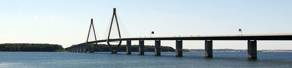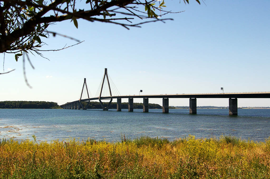 De twee nachten zitten er weer op, dus we trekken we verder. Nu naar het eiland Seeland, waar ook Kopenhagen ligt. Ik wil graag het eilandje Mon bekijken, dus gaan we met een flinke omweg. Om op Seeland te komen, moet je met de tolbrug.