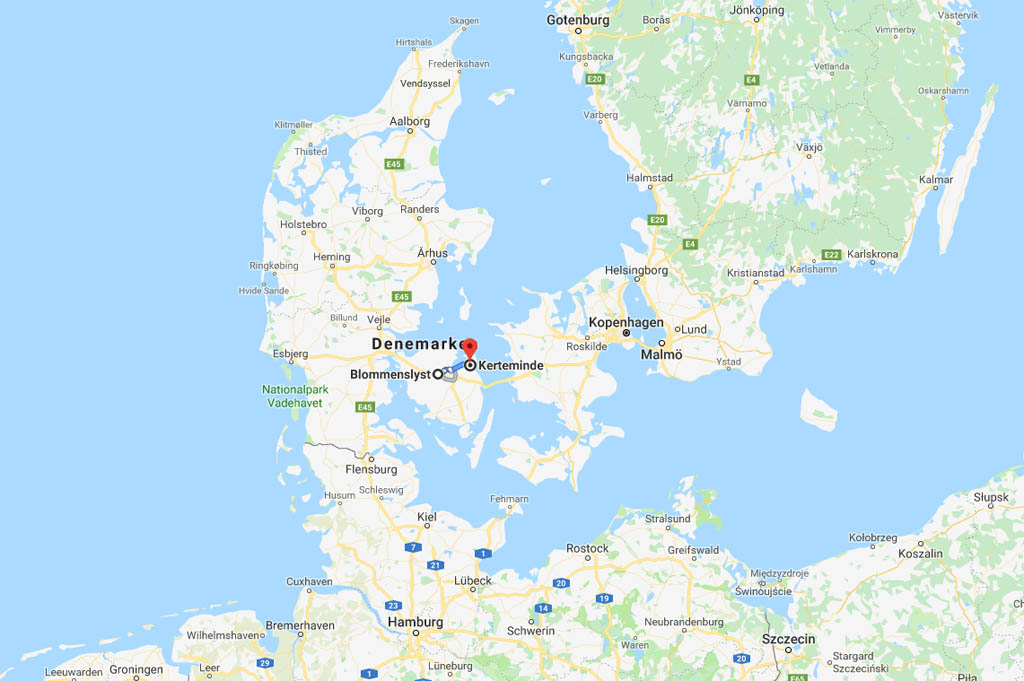 Het schijnt zelfs zo te zijn dat geen enkele plaats in Denemarken verder dan 55 kilometer bij water vandaan ligt. Veel water, drie verschillende eilanden, dus veel bruggen. Anders kom je nergens. Wij komen aan het begin van de middag aan in Blommenslyst.
