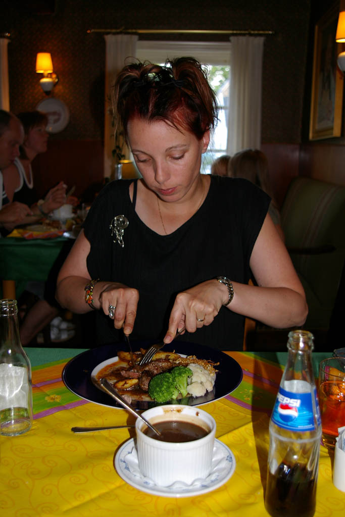 Onze Kro heeft namelijk ook een restaurant. We nemen het dagmenu. Dat is lekker. Gelukkig letten de Denen niet teveel op zaken als calorieën en cholesterol. Alles wordt lekker in de boter gebakken en de maaltijd komt met een smaakvol sausje erbij. Met de prijs valt het ook wel mee: inclusief drinken zijn we voor een avondmaaltijd €45,- kwijt.