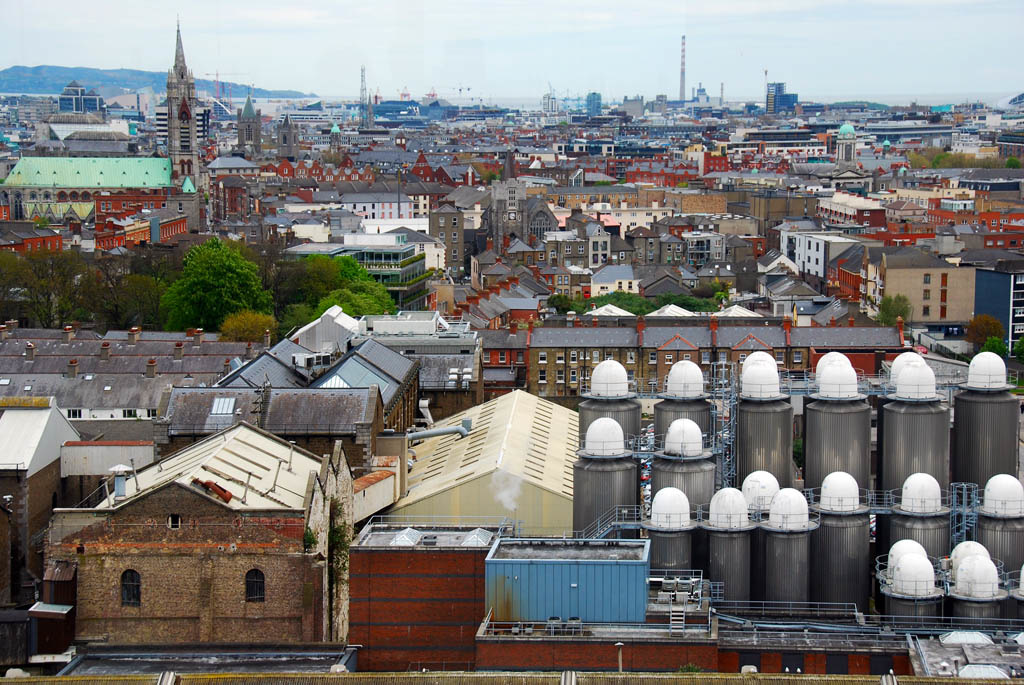 In Dublin nemen we de Hop On bus om de stad te bekijken. Die stopt ook bij de Guinness fabriek. En daar kun je rondkijken. Dat willen we wel. Niet dat we van Guinness houden, maar we zijn wel benieuwd naar het gebouw en hoe dat zwarte bier wordt gemaakt.
