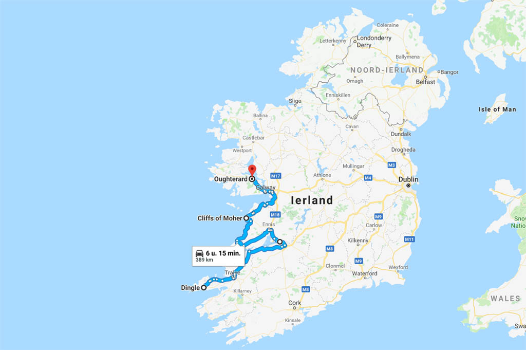| Gereisd: | Dingle naar Oughterard, 389 km |