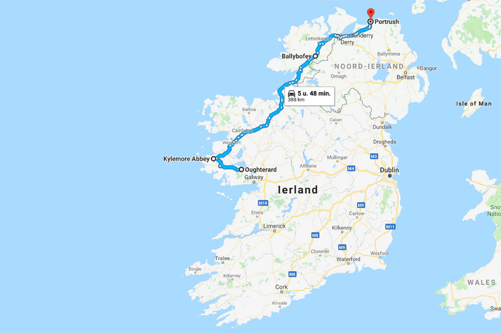 | Gereisd: | Oughterard naar Portrush, 388 km |