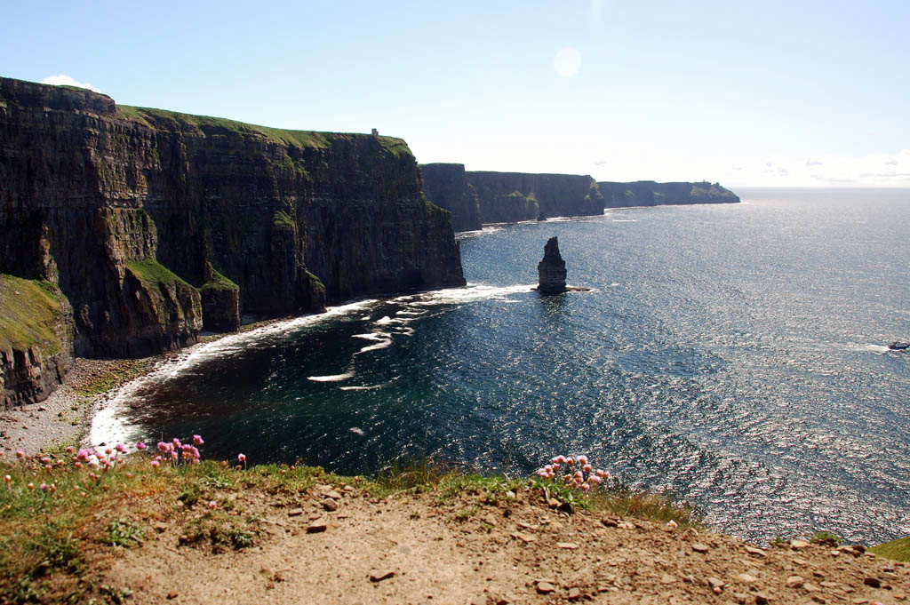 Het is even een wandeling, maar de beloning is fantastisch. Wauw, wat een uitzicht! We zijn er stil van. Dit is misschien wel 1 van de beste plekjes waar je maar kunt zijn op de wereld. Voor Ierland is het heerlijk weer, we zijn bijna alleen op de wereld en we zien dit. Punt.