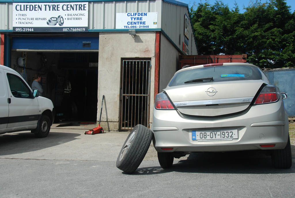 We eindigen de dag in Roundstone. Waar we ontdekken dat we godblymefoo alwéér een lekke band hebben, @#$%*&#@. Terwijl Andy weer een band omruilt tegen een thuiskomertje, komen allerlei mensen vragen of ze kunnen helpen. Inclusief de vrouw van de slager, die door haar man gestuurd is. Maar Andy is inmiddels ervaren en weet de klus weer te klaren.