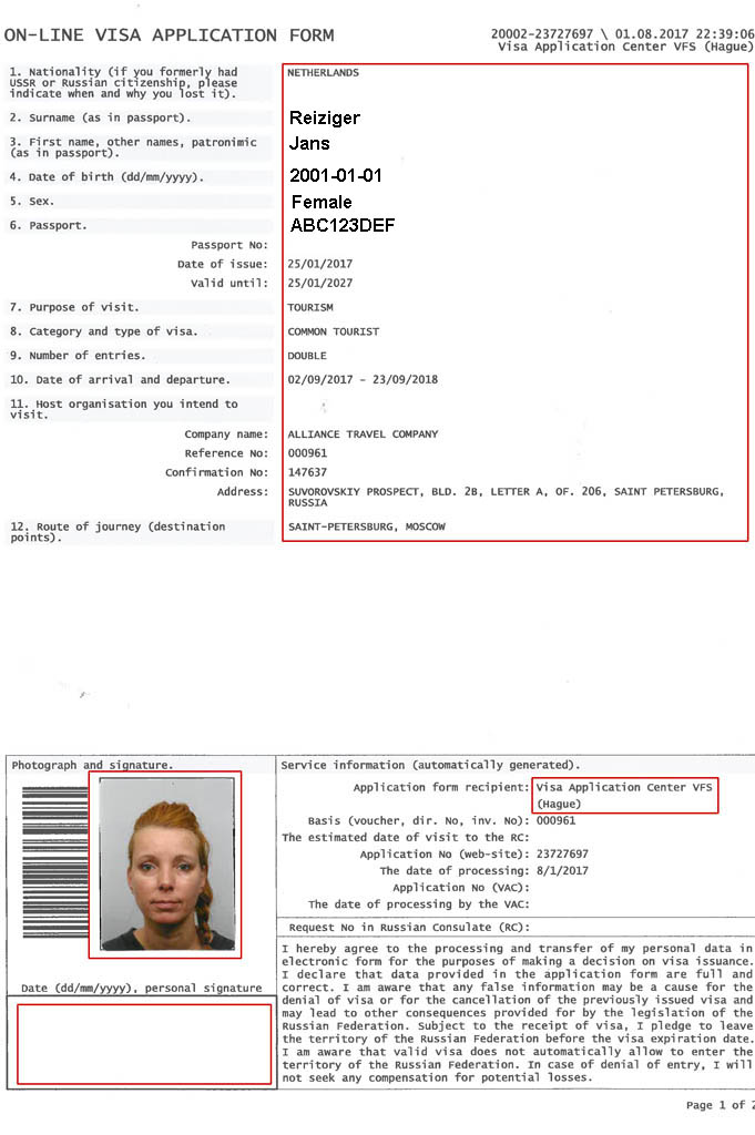 Dan Rusland. Dat aanvraagformulier is een stuk eenvoudiger. Maar hier moeten weer andere documenten bij. Ik print weer de vliegtickets uit en de hotelbevestigingen. Eitje. Dezelfde pasfoto’s zijn ook hier weer toegestaan, dus dat is ook geregeld. Rusland heeft alleen nog 2 andere eisen: ze vinden dat je moet worden uitgenodigd om naar Mother Russia te komen. Op zich ben ik wel van de beleefdheden, maar dit is een wassen neus natuurlijk. Een uitnodiging (of voucher) kun je meestal via je hotel krijgen. Ik besluit echter om dit ook door RM Express te laten regelen. In beide gevallen moeten we ervoor betalen en dan heb ik meer vertrouwen in een Nederlands bureau dat expert is in visa aanvragen. Dus regelt Froja 2 vouchers voor ons en daardoor komt er nog €50,- bij de kosten. Totale kosten zijn nu €511,02 voor 2 paspoorten met in elk 2 visa.