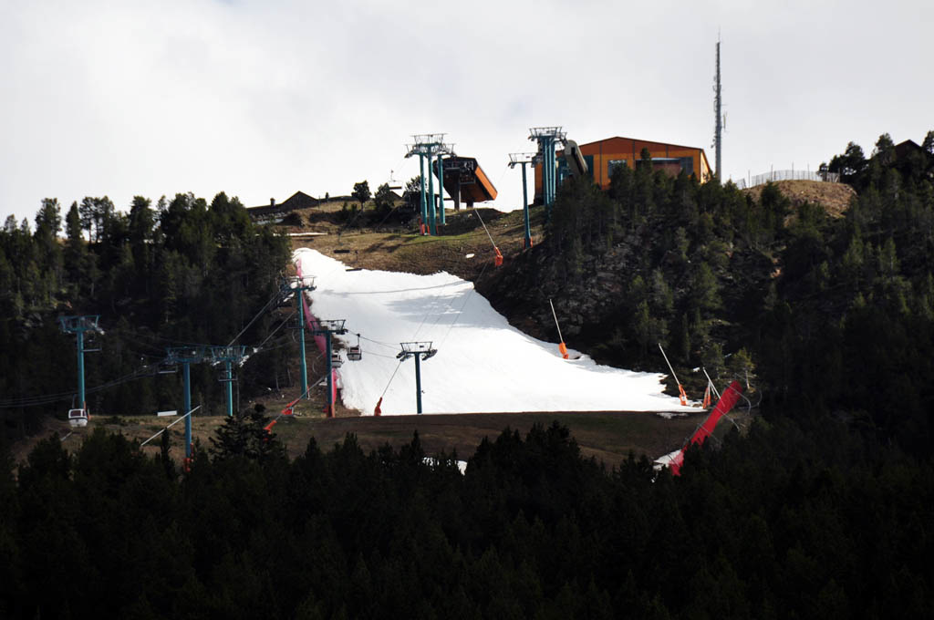 Soldeu ligt in het skigebied Grandvalira en dat is te merken aan de aanwezige skiliften en (winter-) sportwinkels. Er ligt zelfs nog wat sneeuw op de berg. Maar dat is te weinig om op te skiën. In het centrum is een aardig complex, vanaf waar de skiliften vertrekken. Die staan nu natuurlijk stil, maar we kunnen er wel even binnen gluren.