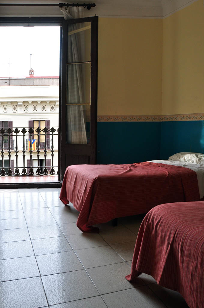 Na aankomst in Barcelona nemen we de trein naar station França en lopen het kleine stukje naar ons pension. Onze kamer is, ehm, bijzonder. Het slaapgedeelte is lekker ruim en we hebben een klein balkonnetje. We hebben ook een klein badkamertje. Een heel klein badkamertje. Als je op de wc zit, kun je het beste een been in de douchebak zetten. Of je knieën stijf tegen elkaar houden, dat kan ook.