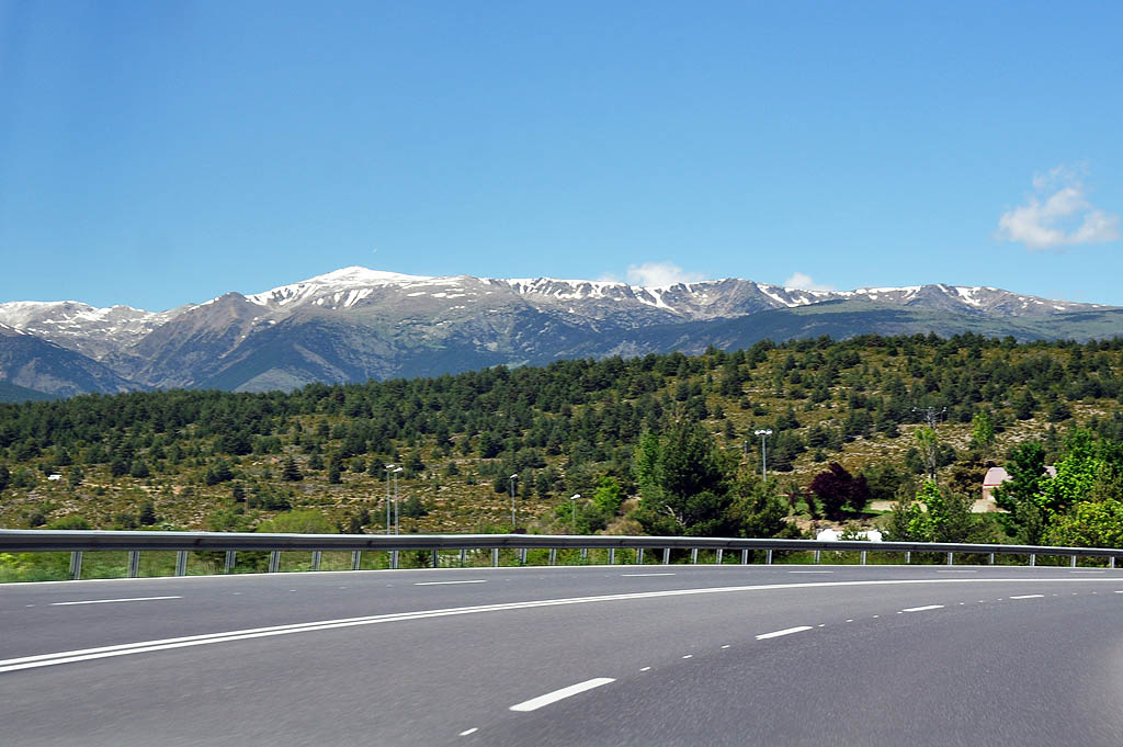 Ook de weg terug naar Spanje gaat over een prachtige route door de Pyreneeën. Aan deze kant zien we nog veel meer besneeuwde bergtoppen. Toch is het ook hier heerlijk weer, een jas is echt niet nodig. We stoppen hier en daar om van de prachtige omgeving en mooie uitzichten te genieten.