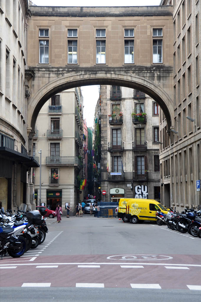Na aankomst in Barcelona nemen we de trein naar station França en lopen het kleine stukje naar ons pension. Onze kamer is, ehm, bijzonder. Het slaapgedeelte is lekker ruim en we hebben een klein balkonnetje. We hebben ook een klein badkamertje. Een heel klein badkamertje. Als je op de wc zit, kun je het beste een been in de douchebak zetten. Of je knieën stijf tegen elkaar houden, dat kan ook.