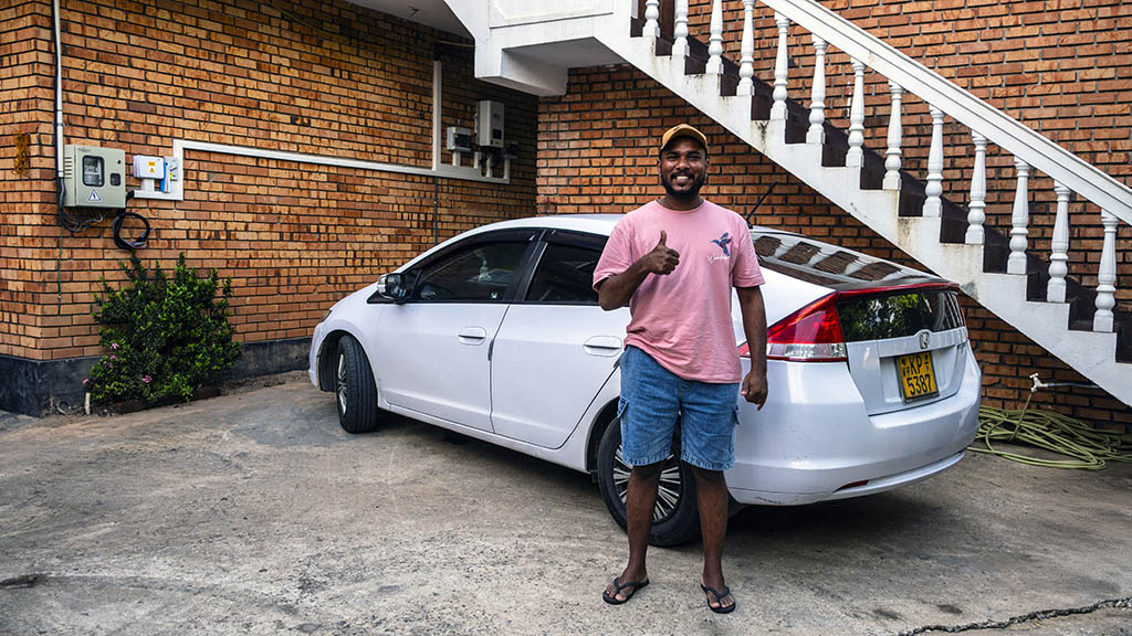 Onze Inn biedt ook ontbijt. Dat is wel zo gemakkelijk. We bestellen het om half negen. We krijgen eggs-as-we-wish, toast, jam en vers fruit. En een eigenaar die met ons komt kletsen. Hij vertelt dat hij drie kinderen heeft en die wonen alle drie in Zweden. Dus. Om half tien komt onze chauffeur. Die zal ons een week lang door Sri Lanka rijden. Hij heet Kushan en komt met een Honda Insight aanrijden. Kushan zal ons de komende week door Sri Lanka rijden. Hij spreekt goed Engels, net zoals de meeste mensen in Sri Lanka. Het is immers een voormalige Engelse kolonie.