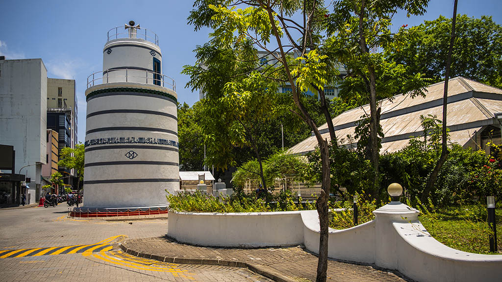 En wat ik dacht dat een vuurtoren is, blijkt de minaret… Ook is er een begraafplaats. Ik kan me niet herinneren dat ik dat eerder bij een moskee zag. Achter de moskee staat het paleis van de president, Muliaage genaamd. Een stukje verderop komen we langs het Sultan Park en kunnen we het Victory Monument bewonderen. Dat monument herdenkt de overwinning van de Malediven op de Tamiltijgers, die in 1988 een staatsgreep probeerden. Zonder succes dus.
