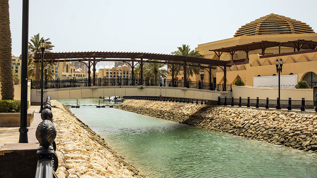 Net als in Dubai hebben ze hier een kunstmatig eiland aangelegd en dat volgebouwd. Het is genoemd naar de parelindustrie, die hier vroeger was. Voordat hier olie en gas werd ontdekt, moest het land het hebben van het parelduiken. Dat zijn ze niet vergeten, getuige dit eerbetoon aan dat verleden. Het eiland heeft een oppervlakte van net geen 14 km2 en het is ingericht in een mediterrane stijl.