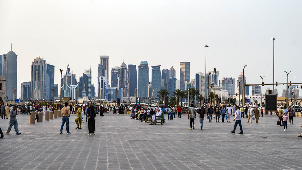 Het is trouwens heerlijk weer, het beste dat we tot nu toe hebben gehad. Hier in het Midden-Oosten is een droge warmte en dat hebben we liever dan het vochtige klimaat van Zuidoost Azië. Het is vandaag redelijk koel, 30 graden, en ’s avonds koelt het af naar 20-25. Er is ook een lekker briesje, aangezien Doha aan de kust van de Perzische Golf ligt.
