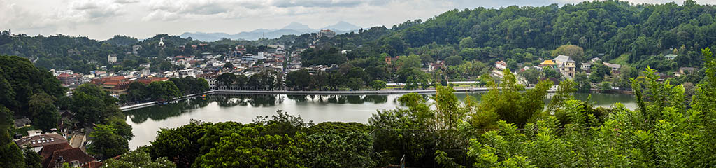 Het is bijna een mierenhoop van mensen en voertuigen, langs winkels, marktjes en kraampjes. Langzaam kruipen we erdoor en komen zo op onze eindbestemming Kandy aan. Kushan probeert ons naar een gemsmuseum, kledingzaak of houtkerfshopje te krijgen, maar daar hebben we geen zin in. We willen wel graag naar het uitkijkpunt boven Kandy. Vanaf daar hebben we geweldig uitzicht op de stad en op het Kandy Lake.