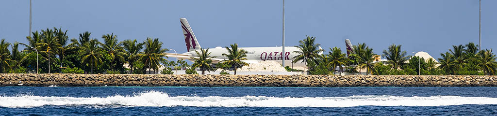 De boot ligt er al, we kunnen vlot vertrekken. Deze keer zitten we helemaal achterin. Dat blijkt een stuk prettiger dan voorin, waar we de heenweg zaten. Achterin voel je nauwelijks iets van het klappen van de boot op het water. Een half uur later zijn we op het vliegveldeiland Hulhule. We vliegen pas vanavond, we hebben nog aardig wat tijd te doden. Daarom gaan we de hoofdstad Malé bekijken. Dat ligt op het naastgelegen en gelijknamige eiland.