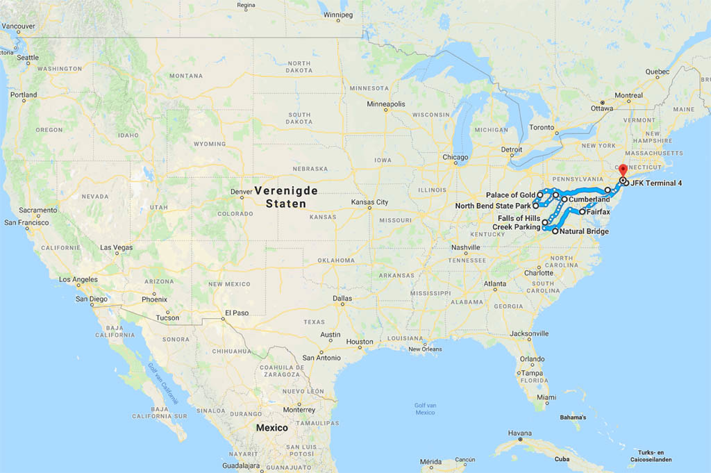 Daar zijn we vorig jaar ook geweest. Toen zijn we wat meer bovenin blijven hangen. Nu gaan we iets zuidelijker, vooral rondom West Virginia. Zijn we nog niet geweest. En aangezien we toch in de buurt zijn, gaan we natuurlijk de familie aan deze kant van het land bezoeken.